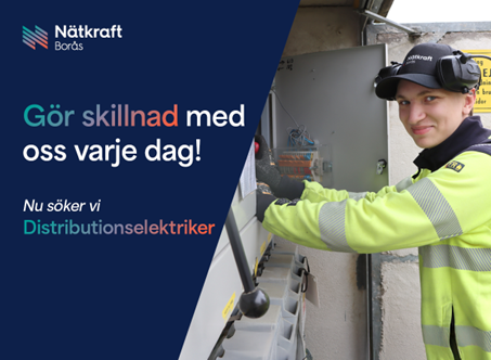 Som Distributionselektriker hos Nätkraft Borås blir du en viktig del av arbetet med att driva, underhålla och utveckla elnätet i Borås. I rollen har du stor frihet under ansvar och får arbeta ute i fält i en miljö som ställer höga krav på säkerhet, kvalitet och samarbete. Distributionsområdet omfattar Borås tätort med omnejd och består främst av kabelnät i stadsmiljö.