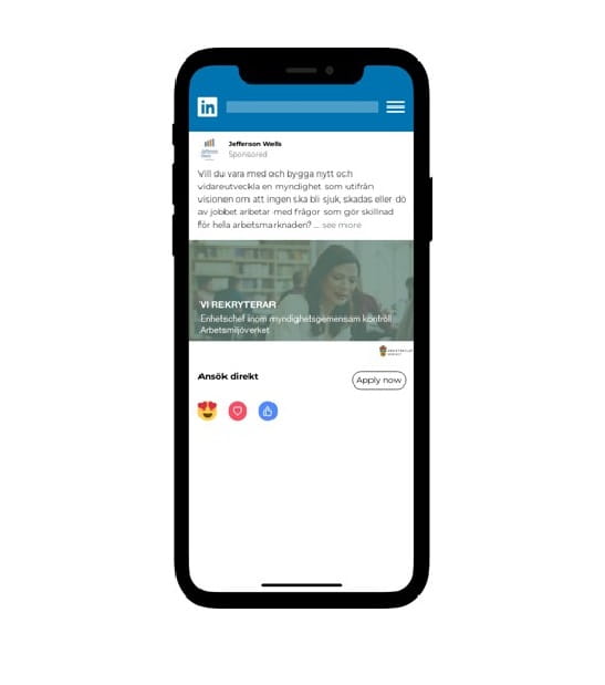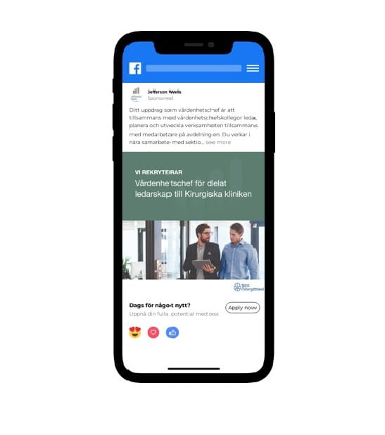 Vi annonserar i sociala medier som LinkedIn, Facebook och Instagram för att matcha, attrahera och väcka intresse hos rätt kandidater. Med annonsering i sociala medier når vi de bäst lämpade kandidaterna, oavsett om de är aktivt jobbsökande eller inte.